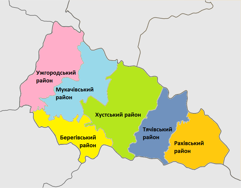 Рис. 1. Райони Закарпаття до 2020 року. Автор: А. Панов